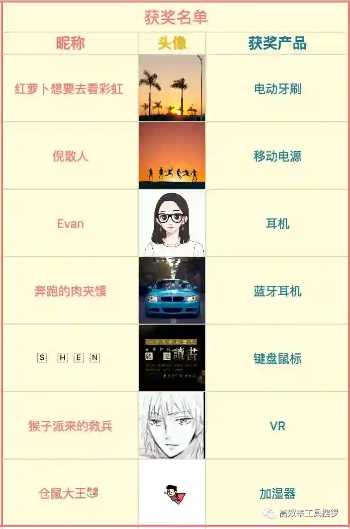 效率君上周五给大家来了一个大福利。7 个电子产品和3 本书,今天就要抽奖了。