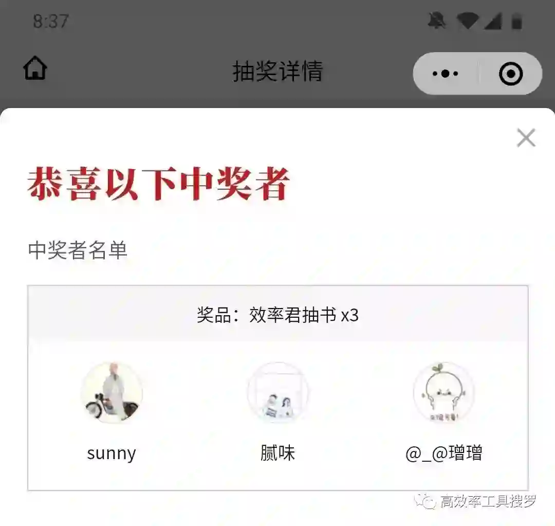 当然没有中奖的用户不要气馁,这样的活动,以后每个月都会有一次,怎么提升中奖率,只能让效率君眼熟(评论区见)你喽,在后台多和效率君互动,还有说出你有多需要,下一次可能就是你啦。