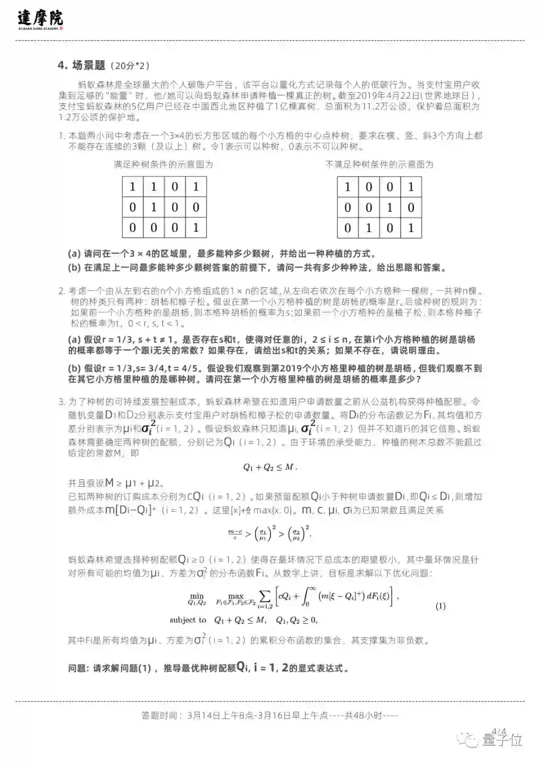 在考试结束之时,阿里官方也公布了第一轮预选赛的4道题目,包含理论数学题和应用数学题两类。