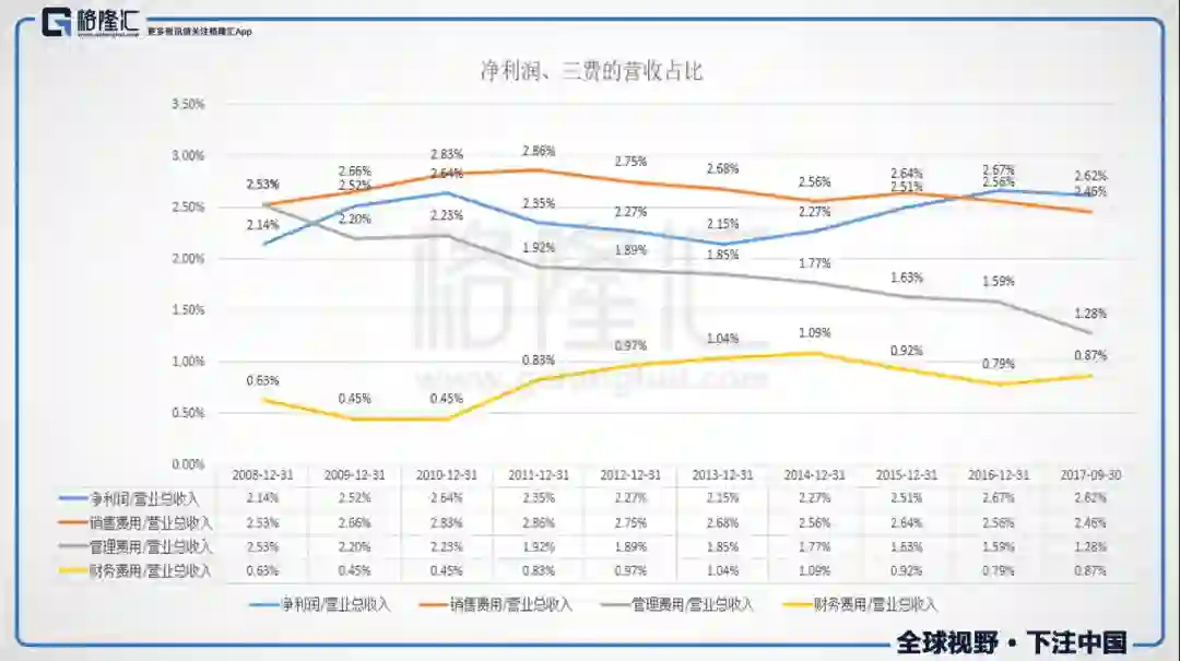 那问题来了,销售费用相对稳定,管理成本的下降是有边界的,财务成本的上行呢,在加息周期下不敢想...那问题来了,一个净利润率只有2.62%左右的业务,在行业账期变长的大背景下,能承受多大的资金成本压力?