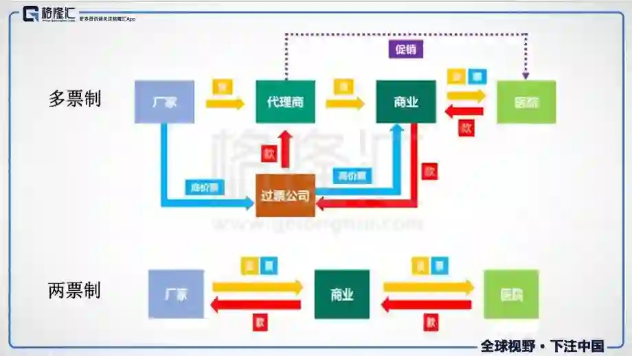 “两票制”是指药品从生产企业到流通企业开一次发票,流通企业到医疗机构再开一次发票,以“两票”替代目前常见的多级代理模式,压缩流通渠道空间。简单点理解就是压缩层级,提高效率。“两票制”对于行业业务流程的改造如下: