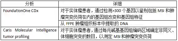 -不可切除或转移,高MSI或MMR缺陷的成人或儿童实体瘤患者治疗后进展,并且没有令人满意的替代治疗方案[2]