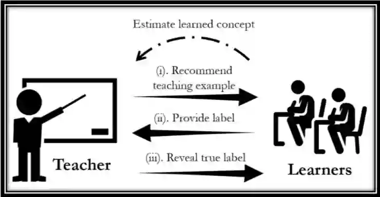Teacher 估计 learner 的学习进度,根据 learner 之前的标注反馈得到上一次的学习概念,然后 teacher 向 learner 推荐一个新的样本进行教学。