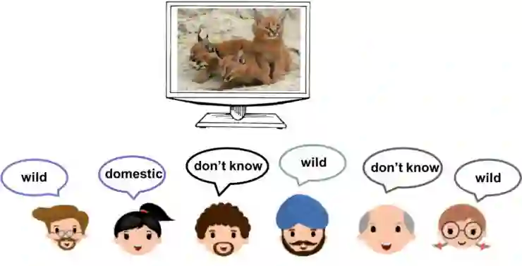 然而,现在常用的方法都忽略了一个很重要的事实,那就是:相比于机器,人类是非常擅长学习一个新的概念(concept),而且可以很容易的将所学的概念很好的泛化并且转移到相似的问题中。图 5 中,人类可以通过看一些插画展示从而学会如何正确标注家猫和野猫的图片。因此,一个更有效的使用众包标注的方式其实应该是在监督 worker 标注的同时对他们进行教学(teach)。