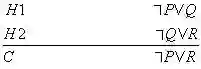 在命题逻辑中,原子被看成一个内部结构不予分析的逻辑基元,代表简单的命题形式。单凭普通形式逻辑中充分条件的假言联锁推理的符号化,只能直接演变为命题逻辑的归结原理。命题逻辑的归结原理或归结法则可归纳如下:对任意两个子句H1和H2,如果H1和H2中各自包含一个互补的句元L1和L2(例如上述图式中的Q和塡Q),则可以删去L1和L2,并将原来的子句H1与H2归结为删去互补句元后两子句余下部分的析取式C。C也以子句形式出现,称为原来两子句(常称为亲子句)的一个归结式例如图式中塡P∨R即为塡P∨Q与塡Q∨R两子句的一个归结式。归结原理或归结法则即因此得名。