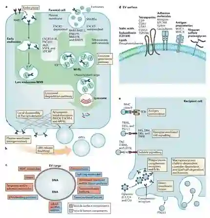 · 外泌体和脱落的微泡是两类脂质包裹的小细胞外囊泡(EV),其在细胞之间传递分子信使(功能蛋白和核酸)以改变受体细胞的表型。