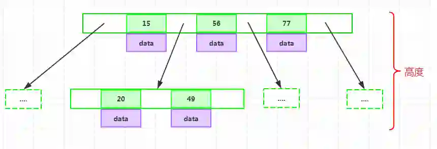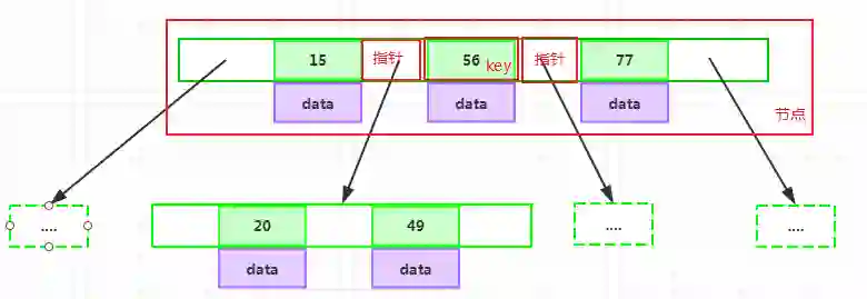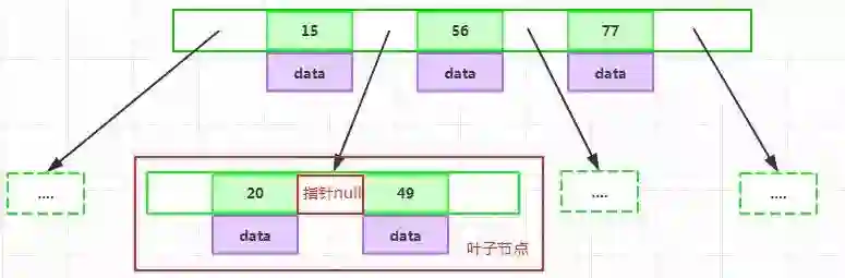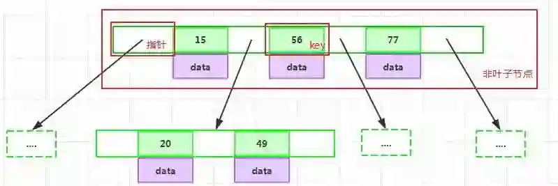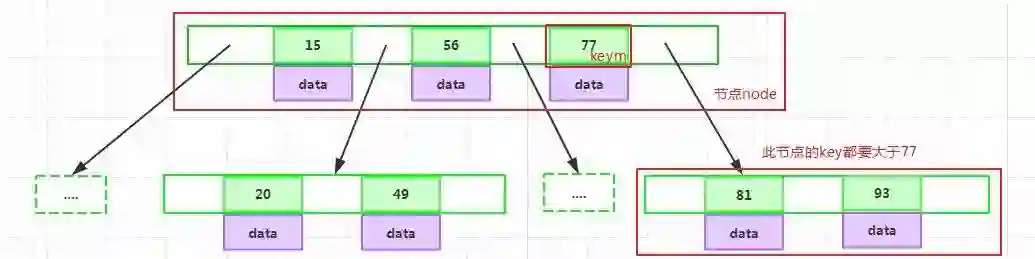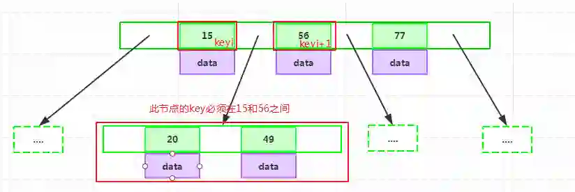 如果某个指针在节点node的左右相邻key分别是keyi和keyi+1且不为null,则其指向节点的所有key小于keyi+1且大于keyi: