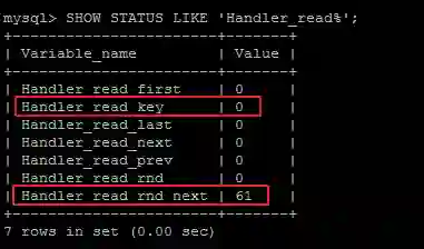 Handler_read_key:如果索引正在工作,Handler_read_key的值将很高。