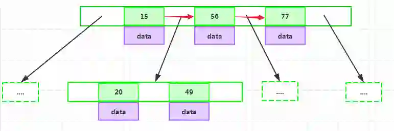 如上图所示,在B+Tree的每个叶子节点增加一个指向相邻叶子节点的指针,就形成了带有顺序访问指针的B+Tree。