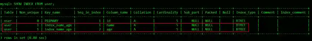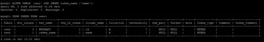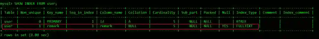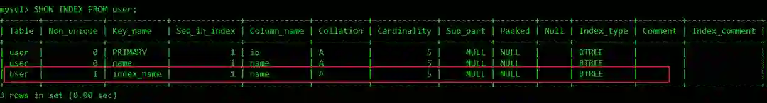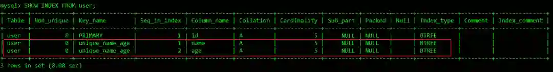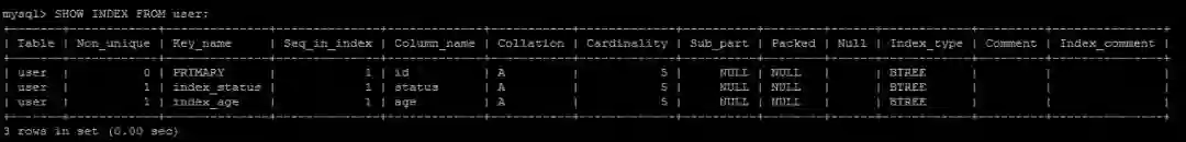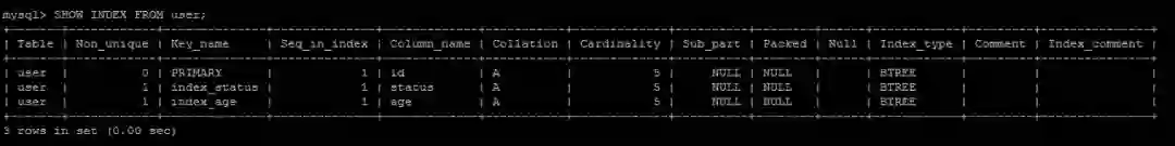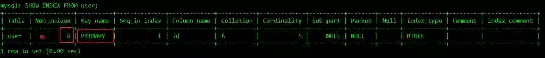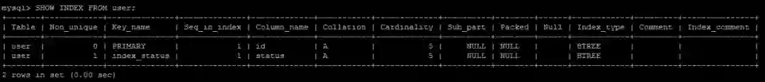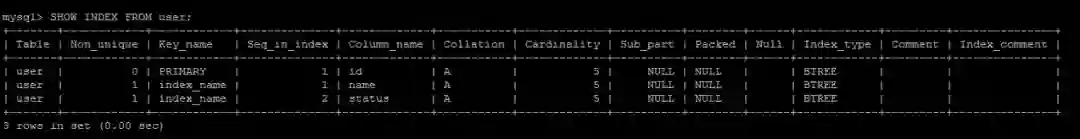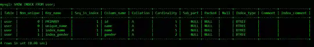 SHOW INDEX FROM user;