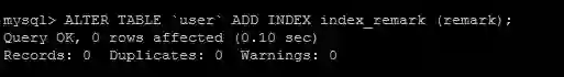 ALTER TABLE user ADD INDEX index_remark (remark);