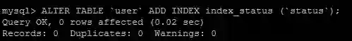 ALTER TABLE user ADD INDEX index_status (status);