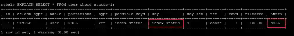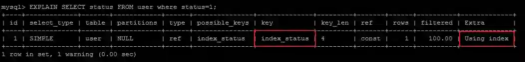 EXPLAIN SELECT status FROM user where status=1;