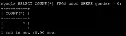查询满足性别为0(男)的记录数: