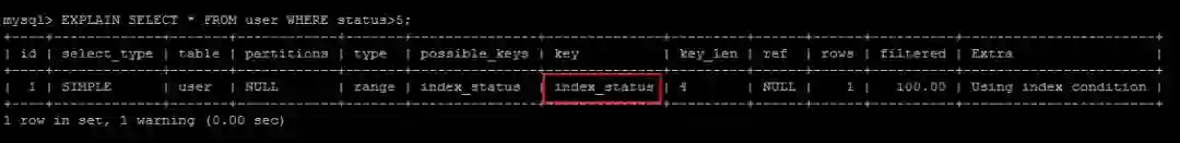 EXPLAIN SELECT * FROM user where status=1;