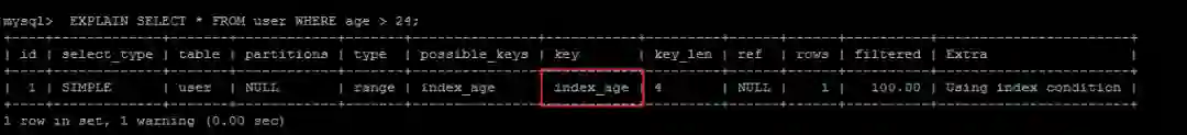 EXPLAIN SELECT * FROM user WHERE age>24;