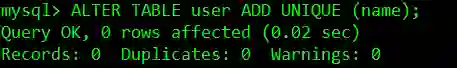 唯一索引 UNIQUE