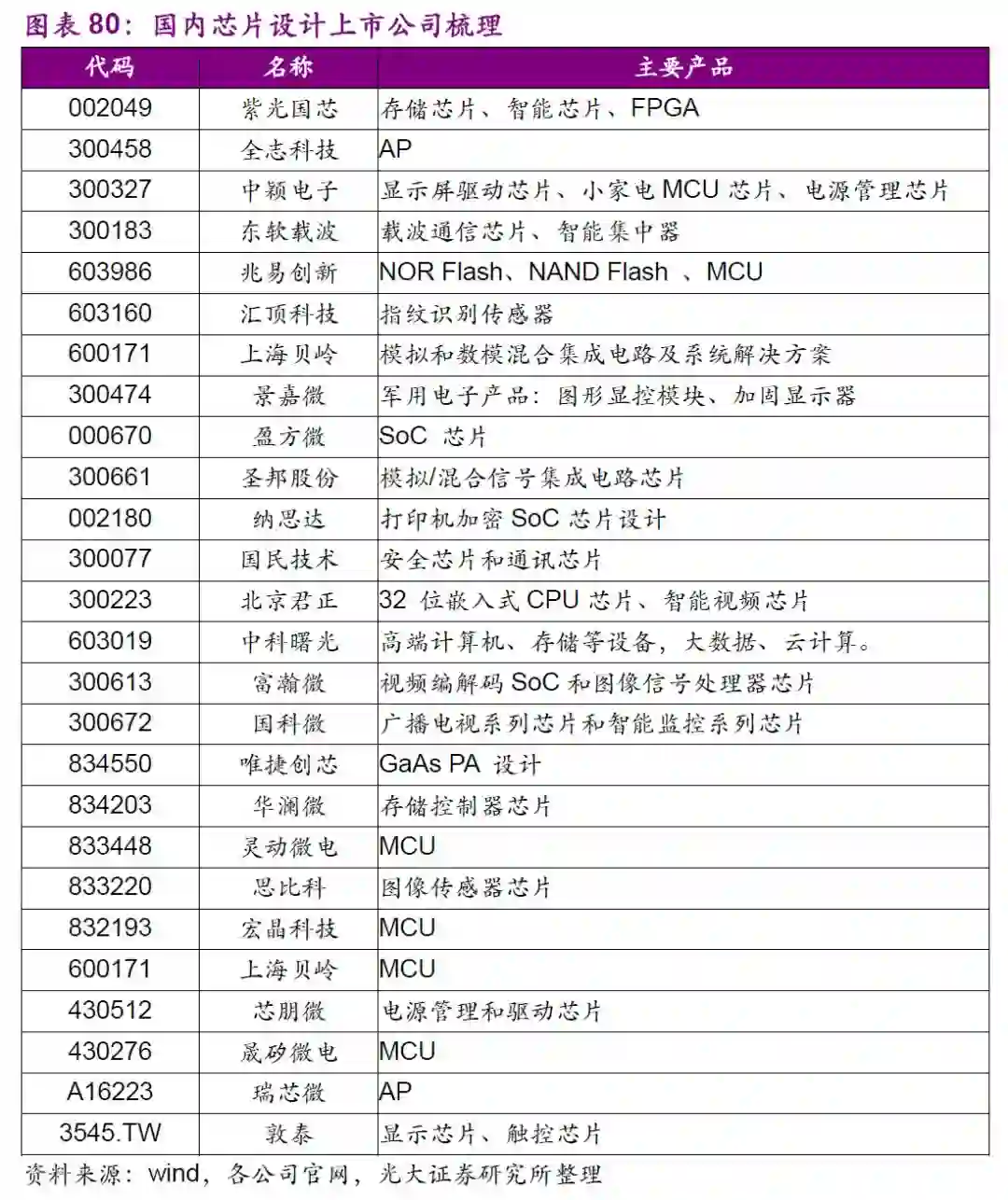 公司是中国唯一的存储芯片全平台公司。主要产品为NORFlash、NANDFlash及MCU,广泛应用于手持移动终端、消费类电子产品、个人电脑及周边、网络、电信设备、医疗设备、办公设备、汽车电子及工业控制设备等各个领域。