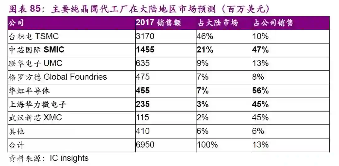 工厂:中芯南方为14nm量产做好准备。2018年1月,中芯国际增资中芯南方,持股比例变为50.1%,国家大基金和上海集成电路基金分别拥有中芯南方27.04%和22.86%的股权,分别成为第二和第三大股东,预计之后6月和12月会再次进行外部注资10亿美元。中芯南方产能就是专门为公司14nm准备,目标是产能达至每月35000片晶圆。