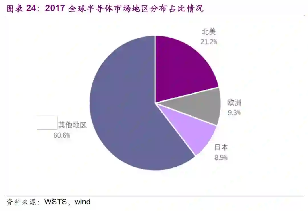 从区域上看,WSTS数据显示北美(美国)地区市场销售额为864.58亿美元,同比增长31.9%,增幅提升36.6%,居全球首位,占到全球市场的21.2%的份额,起到较大的推动作用。其他地区(主要为中国)销售额为2478.34亿美元,同比增长18.9%,占到全球市场总值的60.6%。