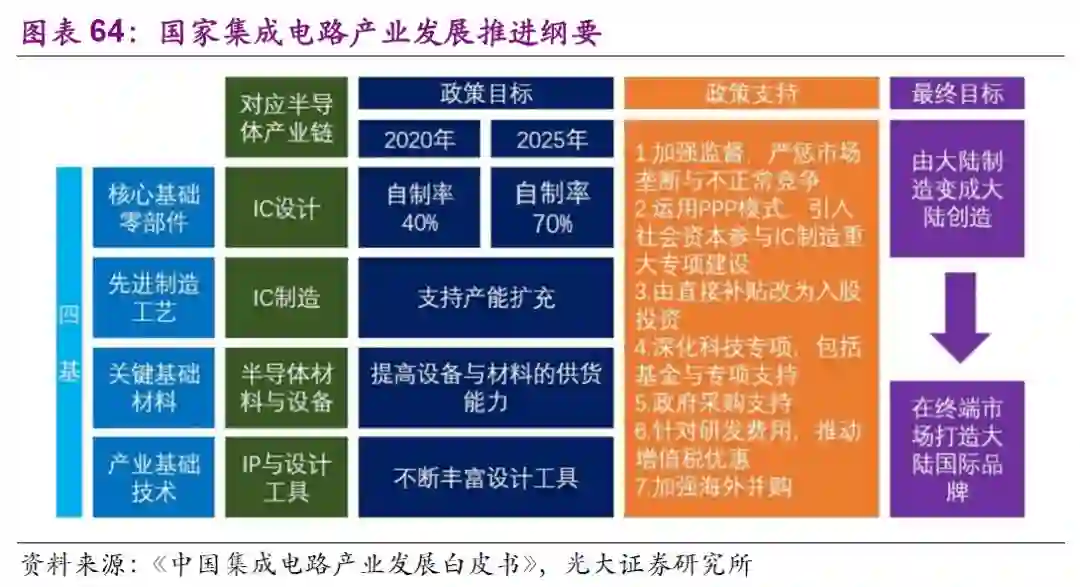 大陆设计制造封测崛起,材料设备重点突破