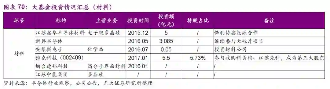 国内厂商在小尺寸硅片、光刻胶、CMP材料、溅射靶材等领域已初有成效。比如8英寸硅片领域的金瑞泓、国盛电子和有研半导体,光刻胶相关领域的江化微,靶材领域的江丰电子和阿石创,CMP抛光材料的安集微电子和鼎龙股份。