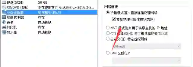 然后在虚拟机kali下,设置为桥接