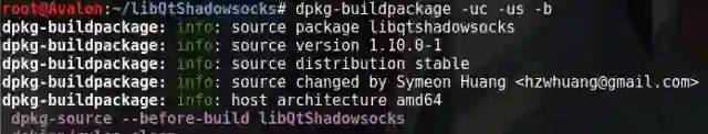 root@Avalon:~/libQtShadowsocks/shadowsocks-qt5#dpkg-buildpackage -uc -us –b