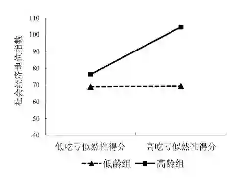 图1.年龄在吃亏似然性得分对社会经济地位预测作用上的调节效应