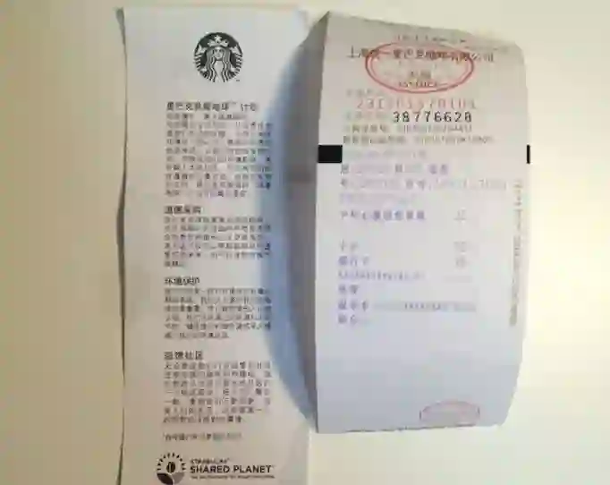 早在一年多前,星巴克就开始在小票上做文章,除了实现小票发票合体(小票的一面是发票)外,小票的背面还加上了品牌活动信息。