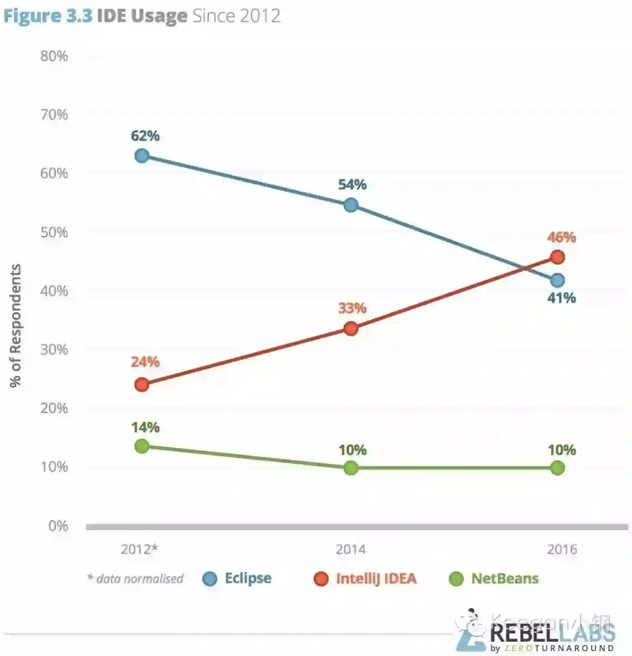 选择了Java,接下来则是IDE的选型了。应该选择哪个,看一张图就知道了: