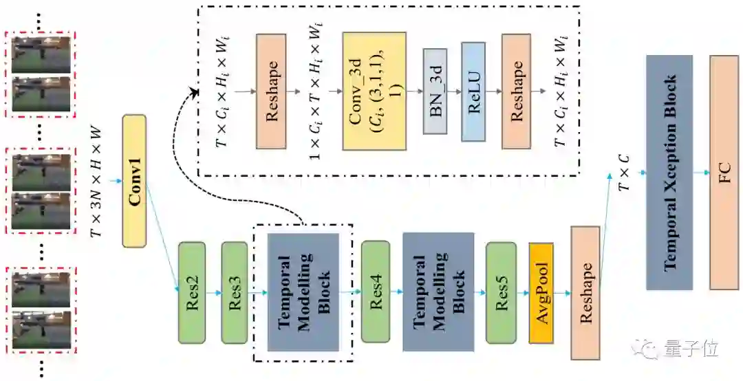• StNet模型,框架为ActivityNet Kinetics Challenge 2018中夺冠的基础网络框架,提出“super-image”的概念,在super-image上进行2D卷积,建模视频中局部时空相关性。另外通过temporal modeling block建模视频的全局时空依赖,最后用一个temporal Xception block对抽取的特征序列进行长时序建模。