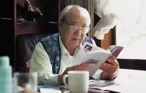1993年6月,费孝通考察山东乡镇企业,在途中休息的宾馆中读书。