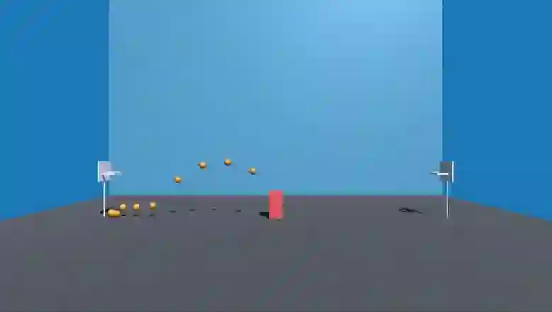 没错,图中的红色块就代表玩家。模拟篮筐上设置有隐形触发器,帮助检测小球通过篮筐的具体时间。
