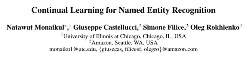 在许多真实任务下,常常需要引入新的实体类型,因此需要重新训练命名实体识别模型。当因为存储或安全问题限制对原始数据的访问时,那么为新实体类型重新标注原始数据的成本将会是高昂的。而现有的持续学习方法又很容易出现灾难性遗忘问题(catastrophic forgetting)。因此作者提出通过蒸馏学习保留先前学习的现有知识,使原模型指导新模型学习新的实体类型的持续学习方法。在CoNLL-03数据集和OntoNotes数据集上实验表明,该方法允许模型渐进地能学习新的实体类型,还能保留先前学习的知识。