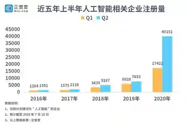但结果是,不仅AI公司没有倒闭,而第二季度,人工智能企业注册量就达到4万家,同比增长了413%。
