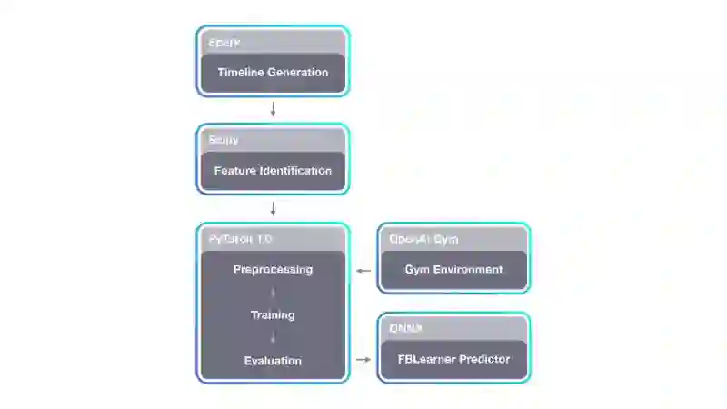 这个管道允许 Horizon 扩展到 Facebook 的数据集。对于策略学习(例如使用 OpenAI Gym), Horizon 可以选择在一个闭环中将数据直接提供给训练过程。
