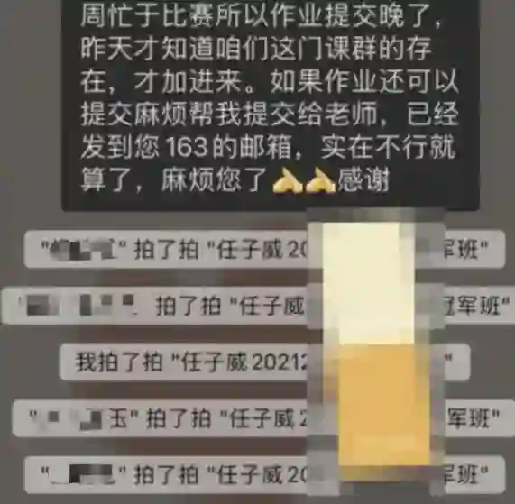 任子威拿下北京冬奥会短道速滑男子1000米冠军后,第一时间在班级群里补交作业,非常诚恳的留言道:抱歉!课代表同学,上周忙于比赛所有作业提交晚了,昨天才知道咱们这门课群的存在,才加进来。如果作业还可以提交,麻烦帮我提交给老师。