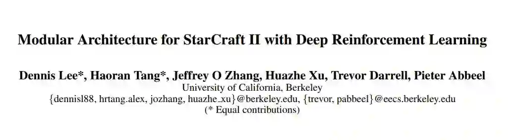来自加州大学伯克利分校的研究者在星际争霸 II 中使用了一种新型模块化 AI 架构,该架构可以将决策任务分到多个独立的模块中。在虫族对虫族比赛中对抗 Harder(level 5)难度的暴雪 bot,该架构达到了 94%(有战争迷雾)和 87%(无战争迷雾)的胜率。只是腾讯等近期也在星际争霸 II 的 AI 架构上提出了模块化方法,而伯克利研究者甚至也发现二者是同期进行的研究。至于有没有撞车,看看他们怎么解释~