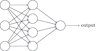 你通常见到的神经网络像是一张蜘蛛网,从许多节点收敛至单个输出。就像这样: