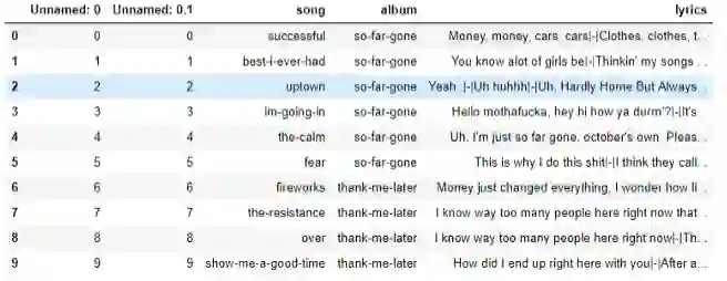 运行我编写的python爬虫后,.csv文件中包含了所有的歌词。是时候开始预处理数据并创建模型了。