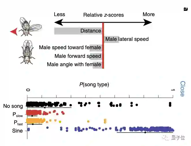 这些方式对应了雄性果蝇的不同策略,研究人员根据这个信息确定了能够控制雄性果蝇做不同决策的神经元。