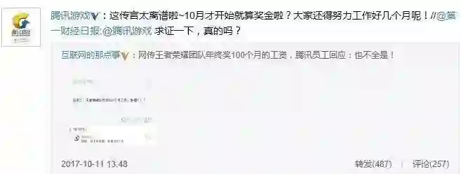 腾讯游戏称消息不属实,“目前Q4季度刚开始,怎么可能现在就公布年终奖?至少要到年底才知道”。