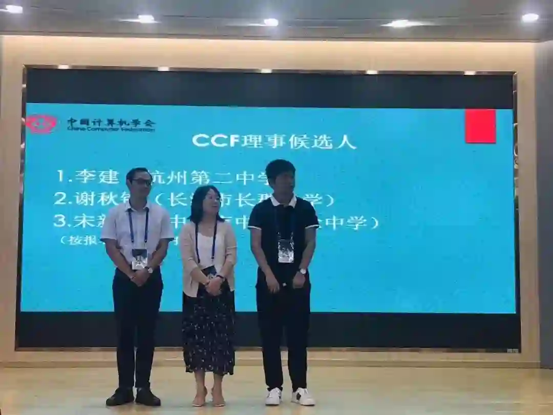 论坛结束后,在场CCF会员教师进行了新一届CCF O类理事候选人选举。首轮投票后,共有三位教师入围。通过第二轮投票,中山市中山纪念中学教师宋新波最终当选O类理事候选人。