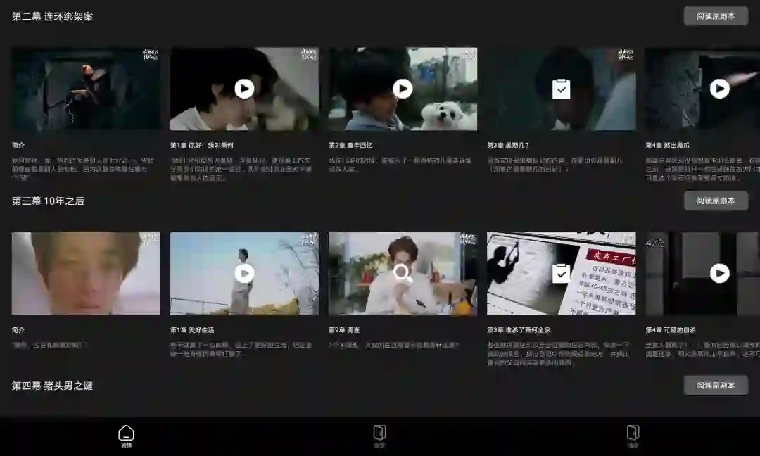 的「剧元科技」CEO李忻辰告诉36氪,目前剧元科技已经完成了第一个全影视化的剧本游戏,在体验其产品时,玩家可以大量减少阅读剧本所花费的时间及游戏时间。玩家通过人手一个平板,看自己角色的影视短剧沉浸故事内容。