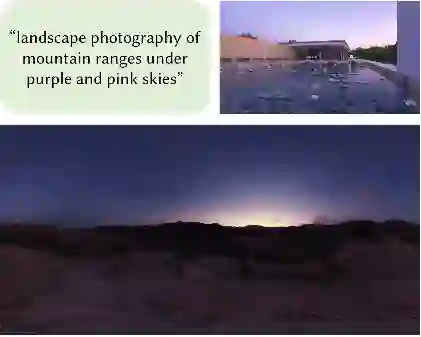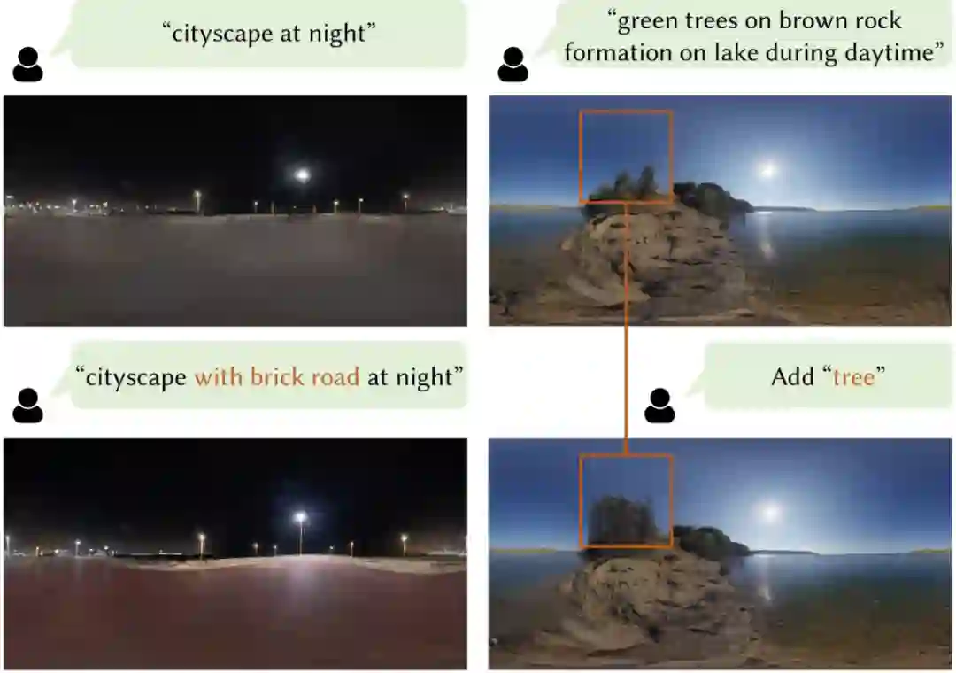 然而,能够直接应用到渲染管线中的 HDRI 应具有足够多的场景细节、极高的分辨率和记录线性光照的高动态范围。这使得不论是采集还是编辑 HDRI 都变得十分困难和昂贵。这自然而然地引出一个问题,我们能否使用图像生成模型来合成 HDRI,同时给予用户足够简单的输入(例如文本),即文本驱动的高动态范围全景图生成。这样一来,在任何虚拟现实应用中,没有专业知识的用户也可以仅仅通过一句话合成出自己想要的逼真场景,同时获得与之匹配的写实光照。
