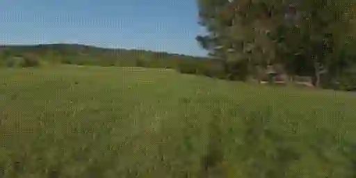 输入 (green grass field with trees and mountains in the distance), 我们能得到下面这样沉浸式的 VR 体验!