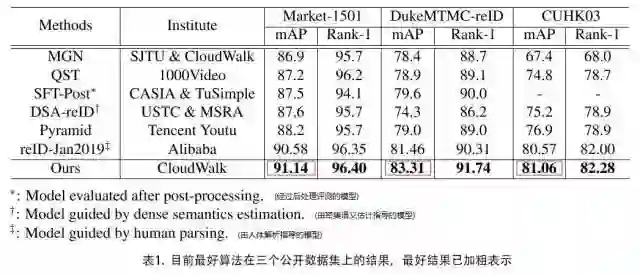 智东西3月1日消息,云从科技宣布在跨镜追踪技术上再次取得重大进展,在三大主流ReID数据集Market-1501、DukeMTMC-reID、CUHK03上超过阿里巴巴、腾讯、微软、中科院自动化所等企业与科研机构,创造新的世界纪录。本次云从科技研究团队在三大数据集的两大核心指标mAP与Rank-1准确率上均取得第一,其中在Market-1501数据集上的mAP达到91.14%。