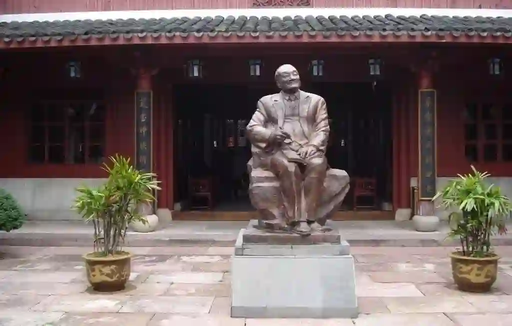►浙江桃花岛上的金庸铜像,图源:wikipedia