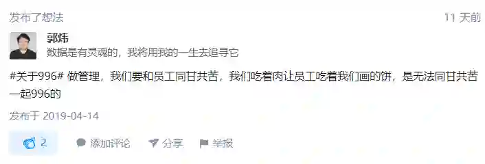 话说回来,郭炜并不反对阶段性的加班或者996。